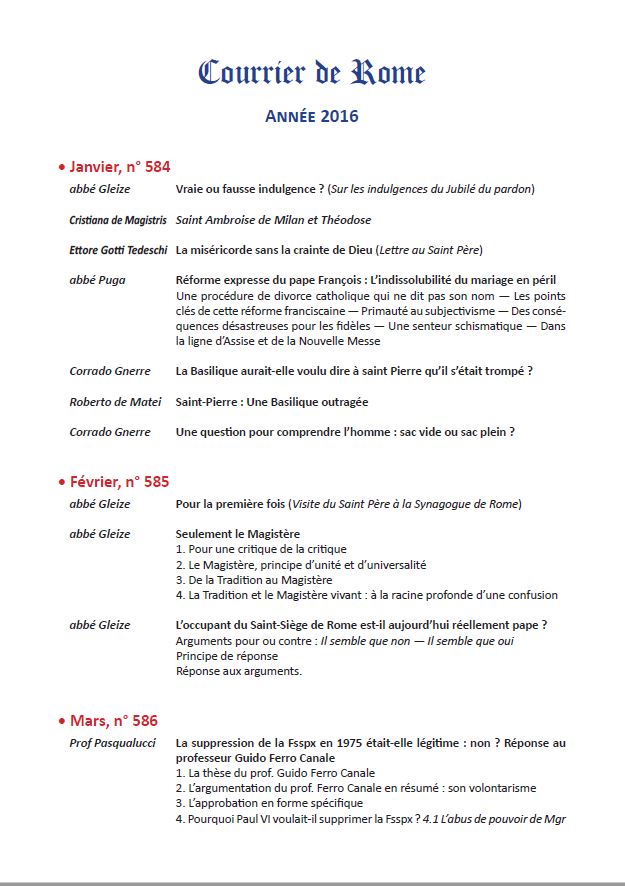 Archives 2016 0 Aucun vote pour le moment Télécharger le fichier PDF (gratuit): 2016_CdR_Complet_INDEX.pdf 4,90 € Saisir une quantité Google Plus Un Like Facebook Tweet Widget Ceci vous intéressera sûrement Courrier de Rome Septembre 2023 Courrier de Rome Décembre 2023 Courrier de Rome Décembre 2022 Courrier de Rome Mars 2022 Connectez-vous ou inscrivez-vous pour publier un commentaire
