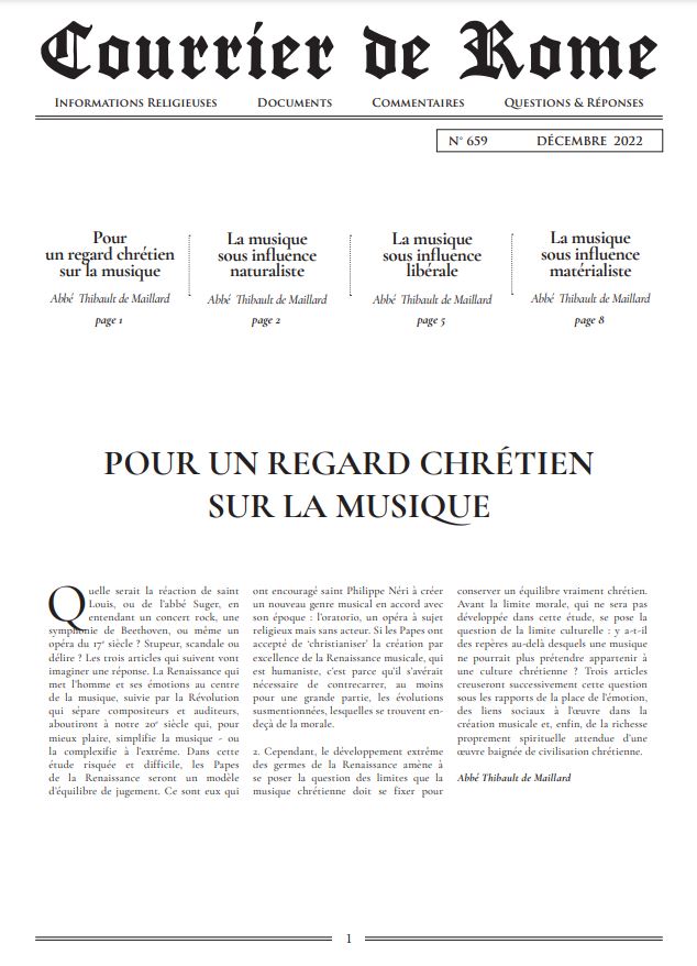 Courrier de Rome Décembre 2022 0 Aucun vote pour le moment N° 659Télécharger le fichier PDF (gratuit): CdR_12_2022.pdf 4,90 € Saisir une quantité Google Plus Un Like Facebook Tweet Widget Ceci vous intéressera sûrement Courrier de Rome avril 2025 Courrier de Rome mars 2025 Archives 2014 Archives 2013 Connectez-vous ou inscrivez-vous pour publier un commentaire