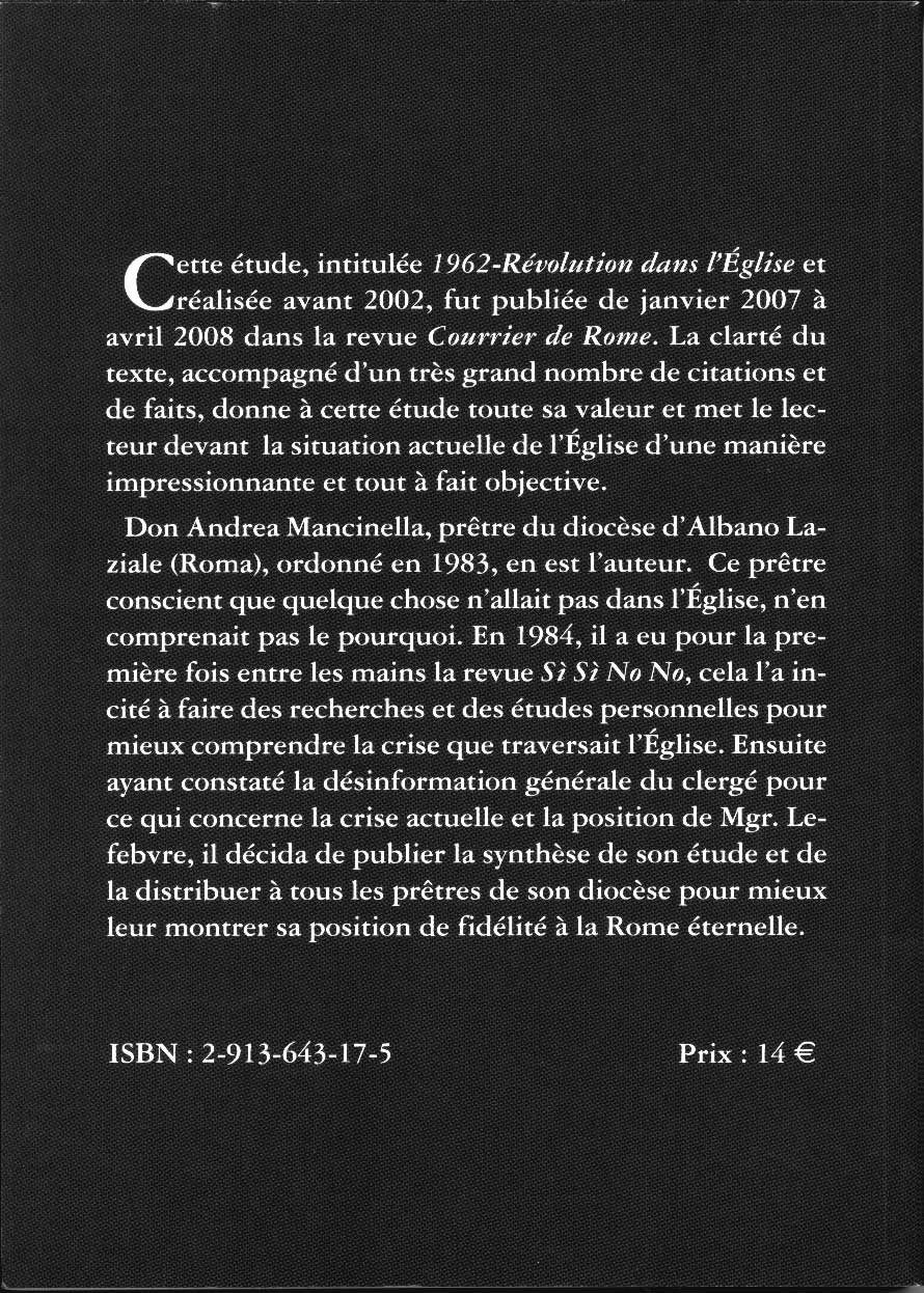 1962 Révolution dans l'Eglise 0 Aucun vote pour le moment 13,30 € Brève chronique de l'occupation néo-moderniste de l'Eglise Catholique depuis 1950 Google Plus Un Like Facebook Tweet Widget Ceci vous intéressera sûrement L'Eglise La Tradition La révolution dans l'Eglise Le successeur de Pierre